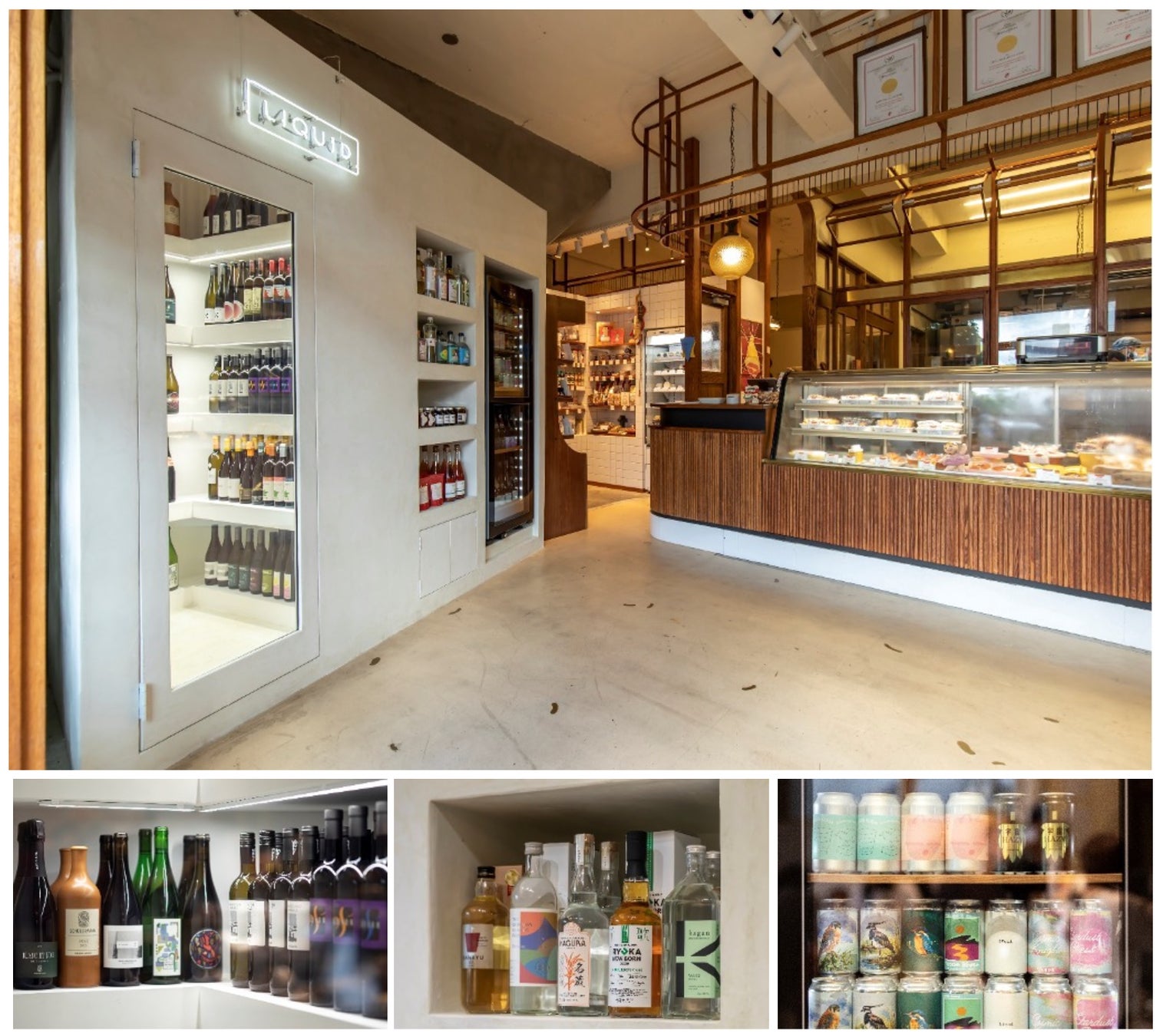 沖縄を拠点に飲むことを探究するプロジェクト<LIQUID>による、飲むことに焦点をあてた沖縄の共同売店所。飲むための道具や食器を扱うギャラリー、ナチュラルワインをはじめ日本酒や蒸留所などの飲み物を扱う酒屋、立飲みが楽しめる角打ちスタンド、自家製ハム&ソーセージ専門店TESIO那覇店を併設。
