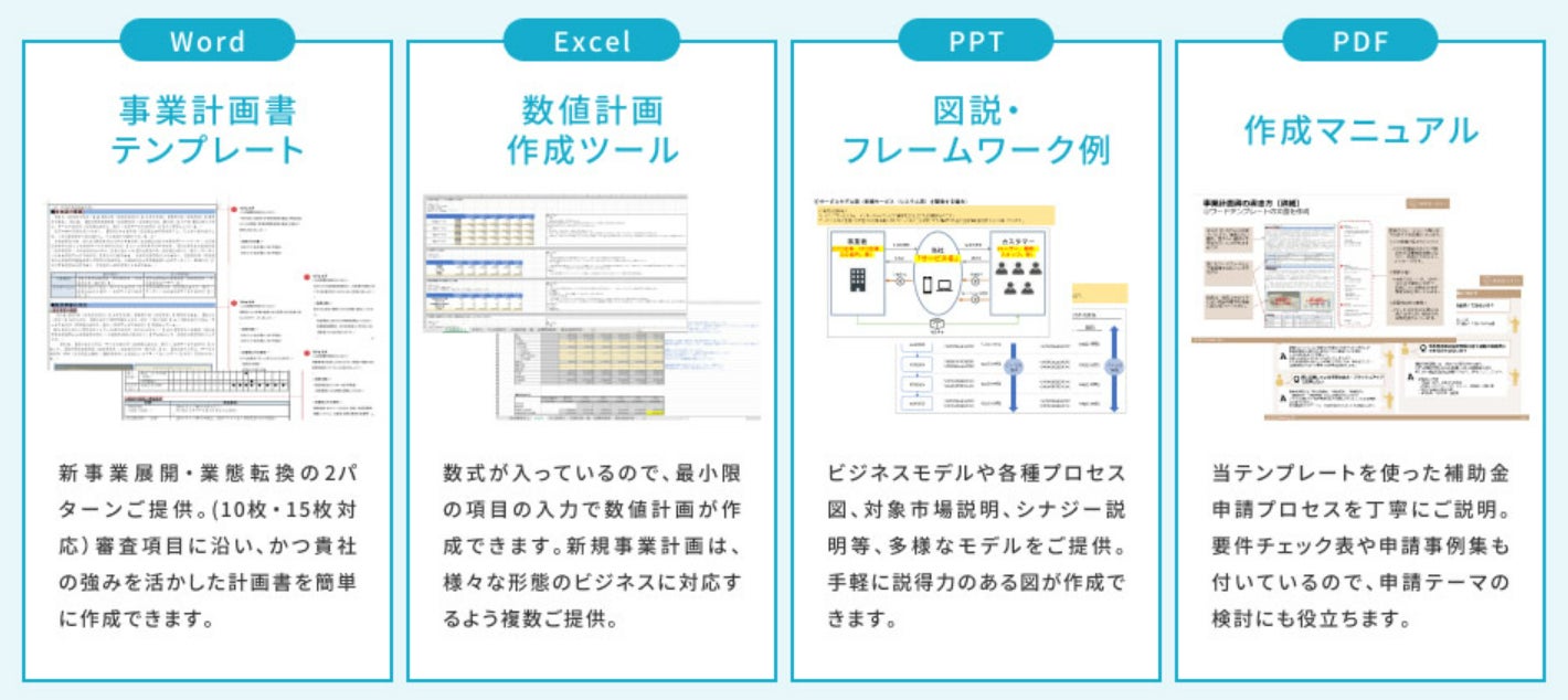 ■申請テンプレートでは、説得力のある文章・数値計画・図説を作成できるツールをご提供