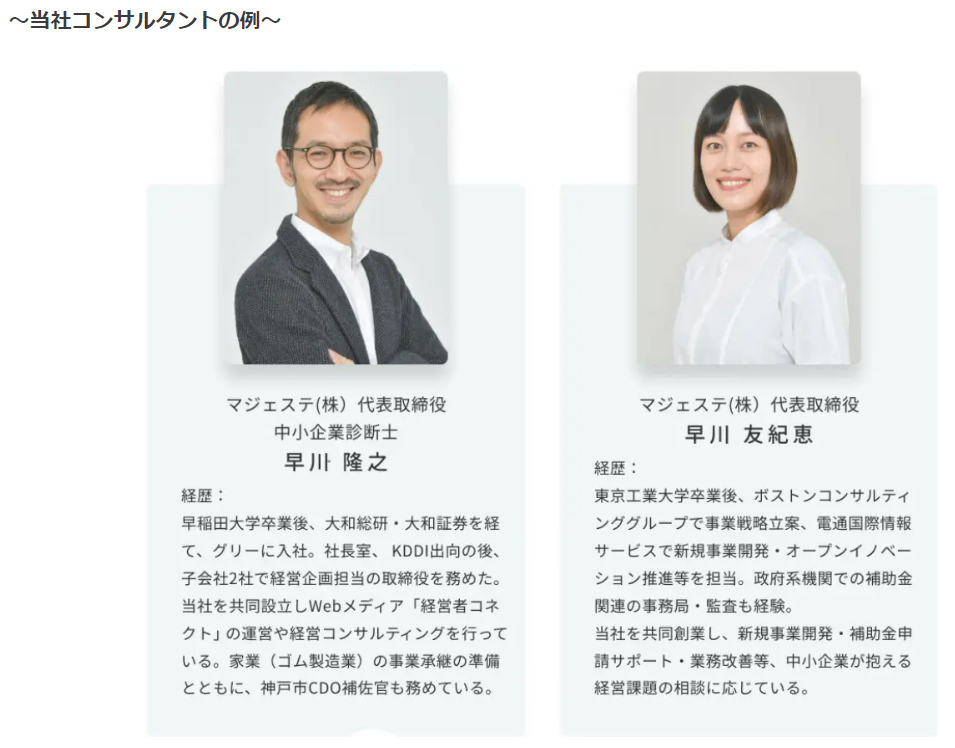 経験豊富なコンサルタントによる丁寧なサポートで採択率88%の実績があるコンサルティングのノウハウを詰め込み、より多くの企業・個人事業主の方に手頃な価格で事業推進のチャンスをつかんでいただければ幸いです。