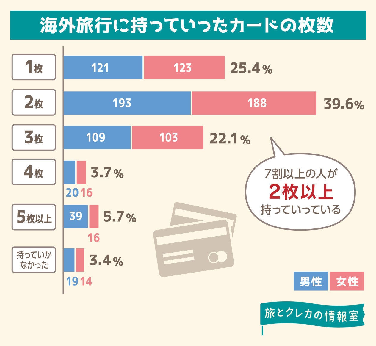 7割以上の人が海外旅行にはクレジットカードを2枚以上持っていっている