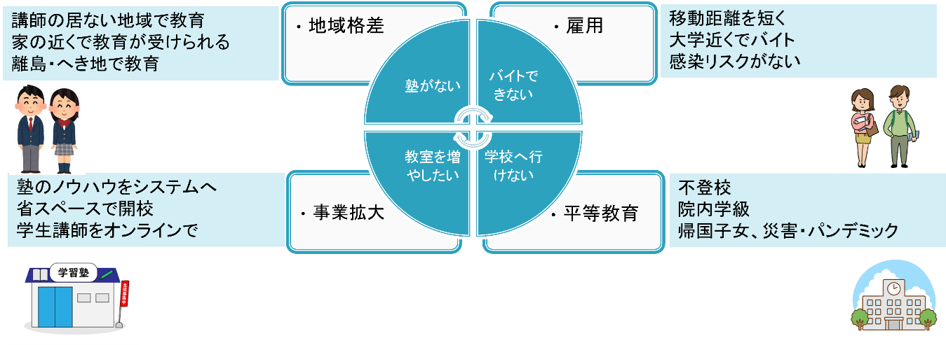 NSG PLATS個別指導事業本部では、以前より教育の地域格差の是正を掲げ、オンライン指導の取り組みを行っていました。ところが、市販のWeb会議システムでは、NSG PLATS独自の完全1対1指導システムが再現できませんでした。以下の課題を抱えていたこともあり、「必要だから作ってしまおう!」と共同開発が始まりました。