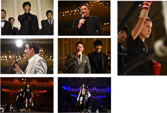 しばらくの歓談のあと会場に響き渡ったのは、アマチュアボクシングで6度の国体出場経験がある、シンガーソングライターのTEEさんの歌声。リング上で「ベイビー・アイラブユー」など2曲のライブステージを披露し、続いて、なんと自身がエキシビションマッチに出場。対戦相手はボクシング元WBC世界スーパーフライ級チャンピオンの川嶋勝重さんが務め、ボクシングの試合でも会場を魅了。