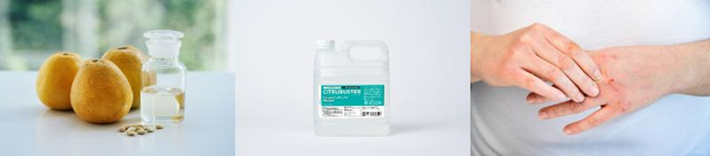 「CITRUBUSTER(シトラバスター)」は、アルコールや化学薬品を一切用いずにグレープフルーツの種子より抽出される天然抗菌成分「GSE」の力で効力を発揮する、非アルコール系の除菌抗菌液です。おもに歯科を中心に長年の実績を持ち、現在、様々な医療機関をはじめ、教育・介護施設やホテルなど様々な企業で使用されています。