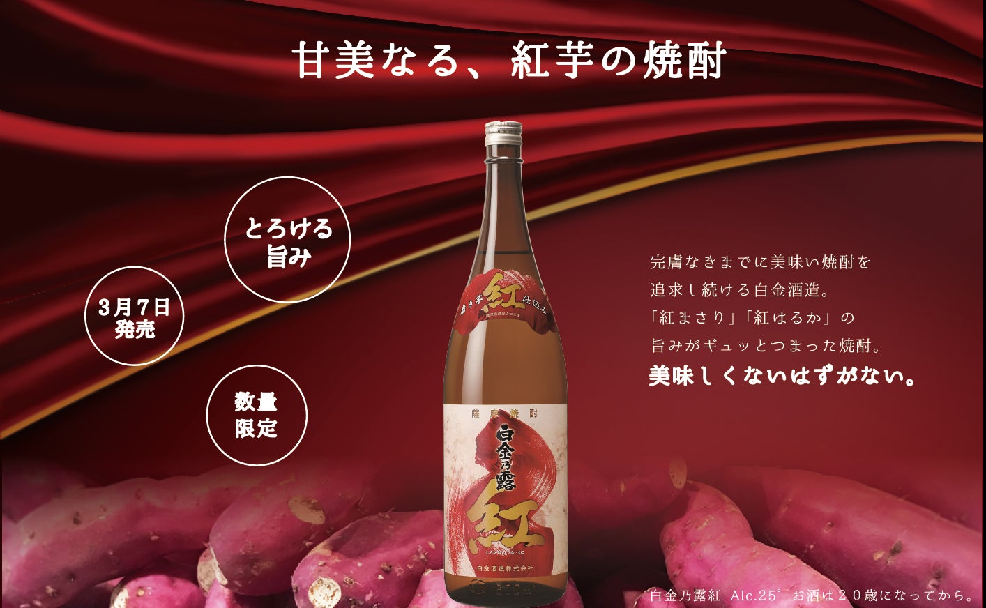 白金酒造株式会社(本社:鹿児島県姶良市、代表取締役:竹之内晶子)は、3月7日より「白金乃露紅」を今年も数量限定発売致します。季節限定で販売しております白金乃露紅は、毎年好評頂いております人気の季節商品となっております。