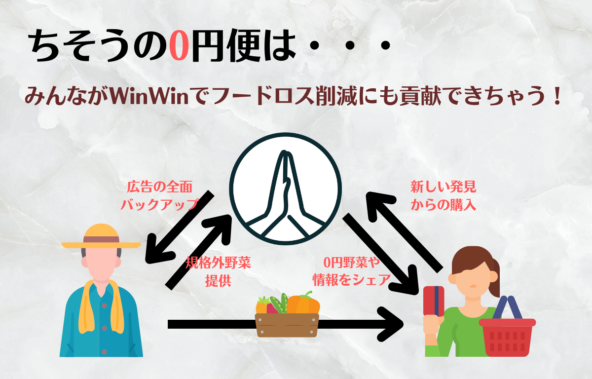 多くの情報が行き交う現代だからこそ正しい情報を、安心して食べられる安全な商品を扱うサービスが必要です。ちそうの0円便では生産者、消費者どちらにも寄り添ったサービスを提供していきます。