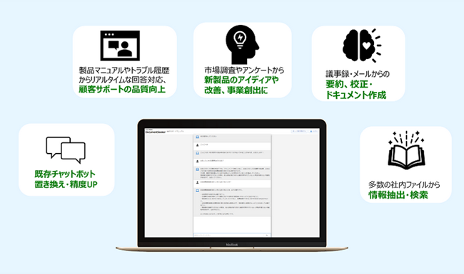 従来の情報検索の困難さを解消し、エンジニアの直感的な問いかけで過去の知見や新しいアイディアが瞬時に取得可能となり、過去の情報を将来のビジネスに活かすことが可能となります。
