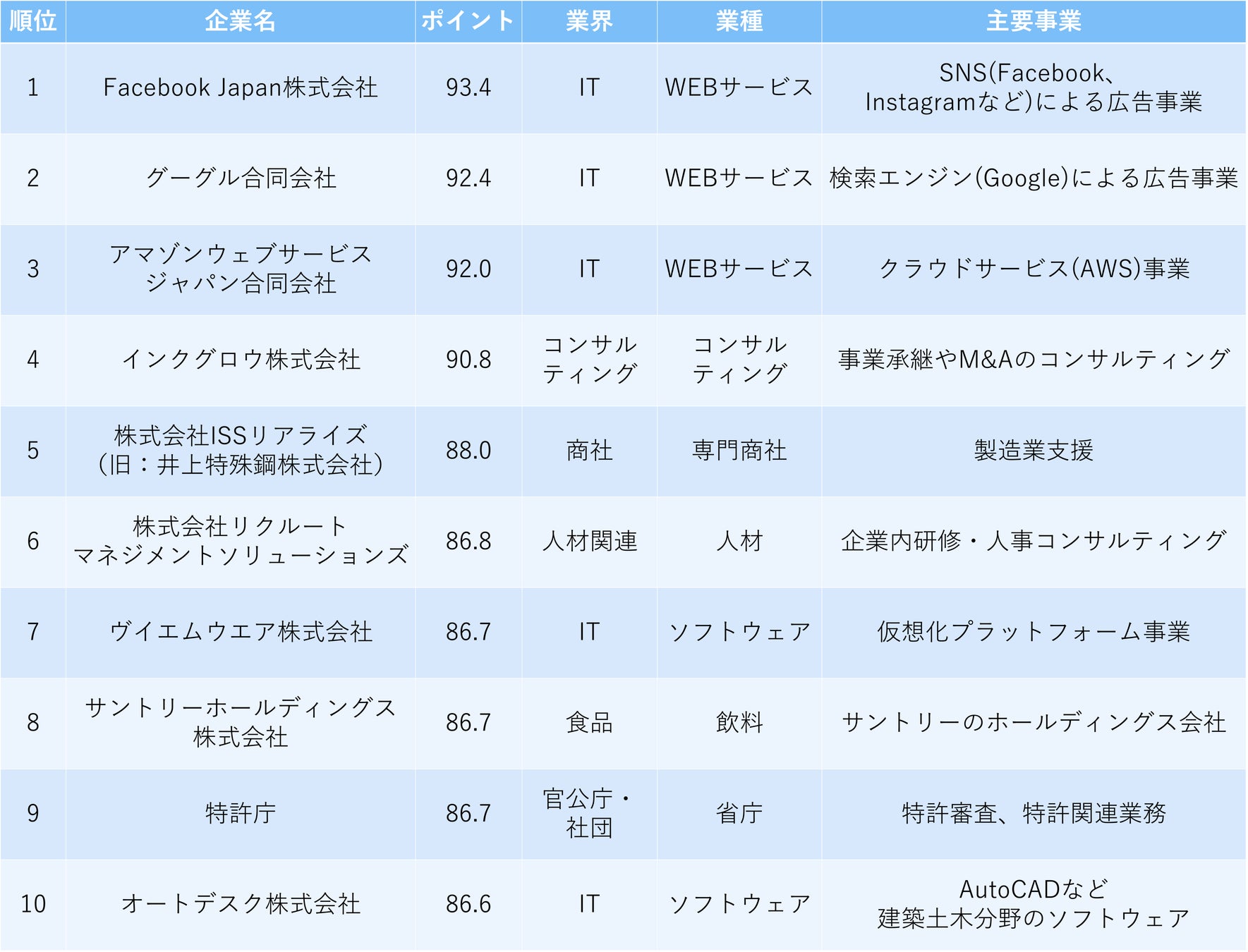 ■2024年卒版 一流ホワイト企業ランキング(TOP10のみ表示)