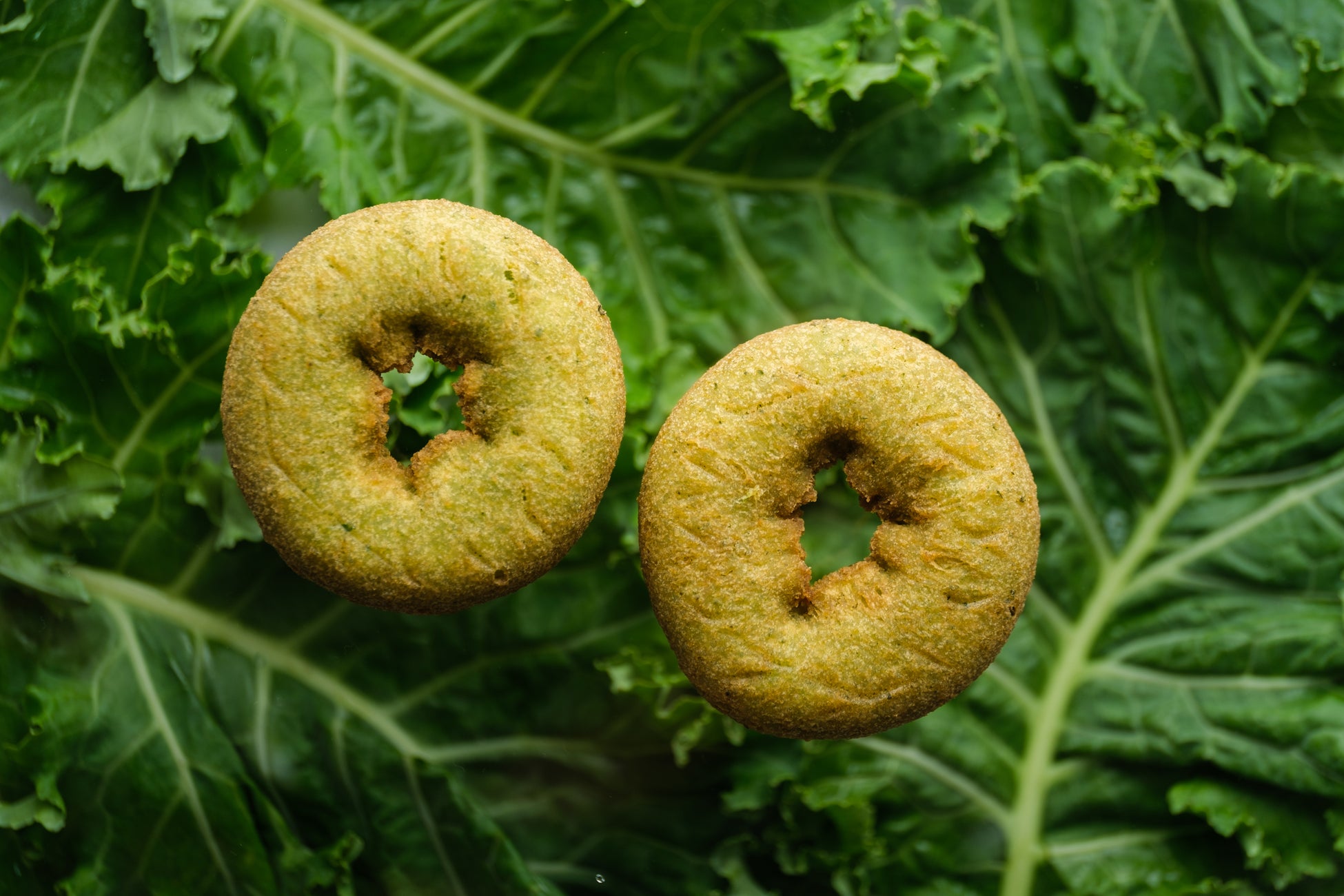 ケールは、緑黄色野菜の王様と言われることもあるほど高い栄養価で知られる食材。ケール特有の風味や苦味をいい形で活かしたドーナツに仕上げるため、ケールの使い方や生地に混ぜ込むケールの量、仕上げの風味付けなどを変えて試作を繰り返した結果、「栄養たっぷりで、朝食にもぴったり」とウフフのママスタッフや子どもたちからも大好評のドーナツが出来上がりました。鮮やかな緑色も魅力の、身体と地球にやさしいベジタブルドーナツをぜひお楽しみください。