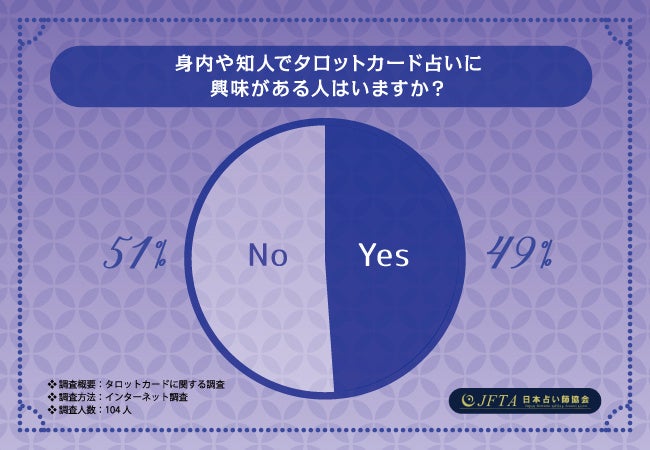 そこで今回、タロットカード士資格認定試験(https://www.uranai.org/tarot/)を主催する日本占い師協会(https://www.uranai.org/)は、全国の男女104名を対象に『タロットカード占い』に関するアンケートを実施しました。