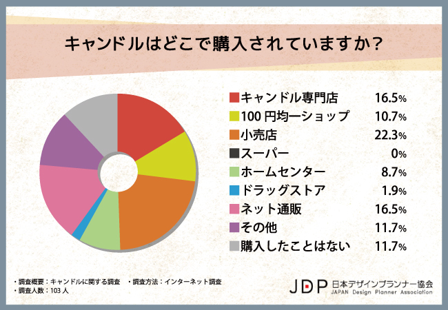 また、キャンドルの購入先として『小売店』や『キャンドル専門店』が多いという結果も判明しました。