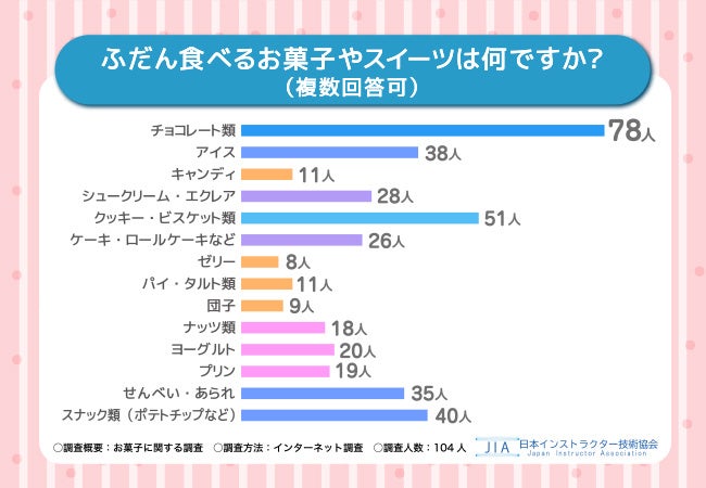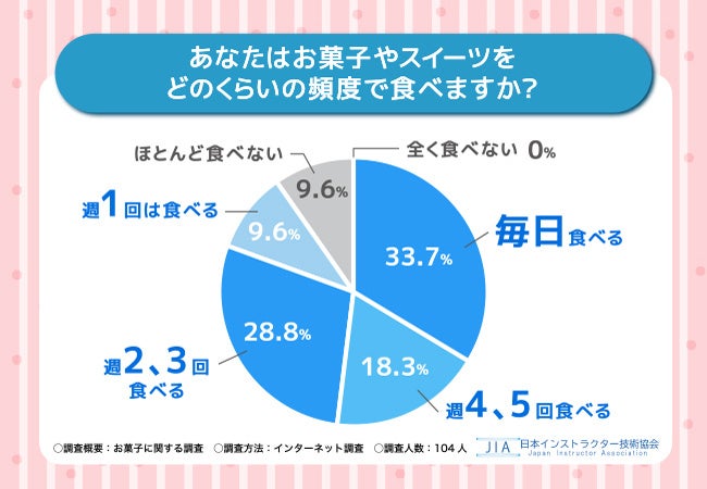 そこで、お菓子作りパティシエ資格検定(https://www.jpinstructor.org/shikaku/okashi/)を主催する日本インストラクター技術協会(https://www.jpinstructor.org/)は、全国の20〜60代以上の男女104名を対象に、お菓子・スイーツについての意識調査を実施しました。