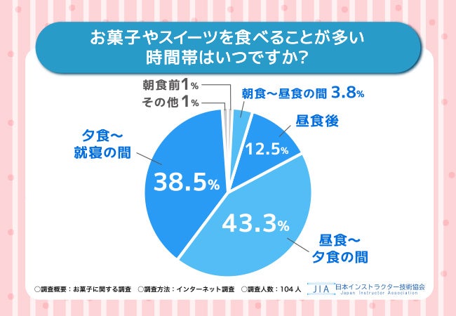 お菓子やスイーツを食べる時間帯は「昼食〜夕食の間」が4割以上という結果に!