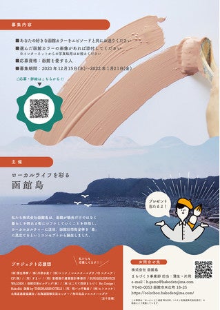 「ローカルライフを彩る」株式会社函館島(本社:北海道函館市、代表取締役:蒲生寛之、以下函館島)まちづくり事業部は、まちを彩る新プロジェクトを始動。「函館カラーをみつけよう」と題して、あなたの想う「函館カラー」を公募しています。