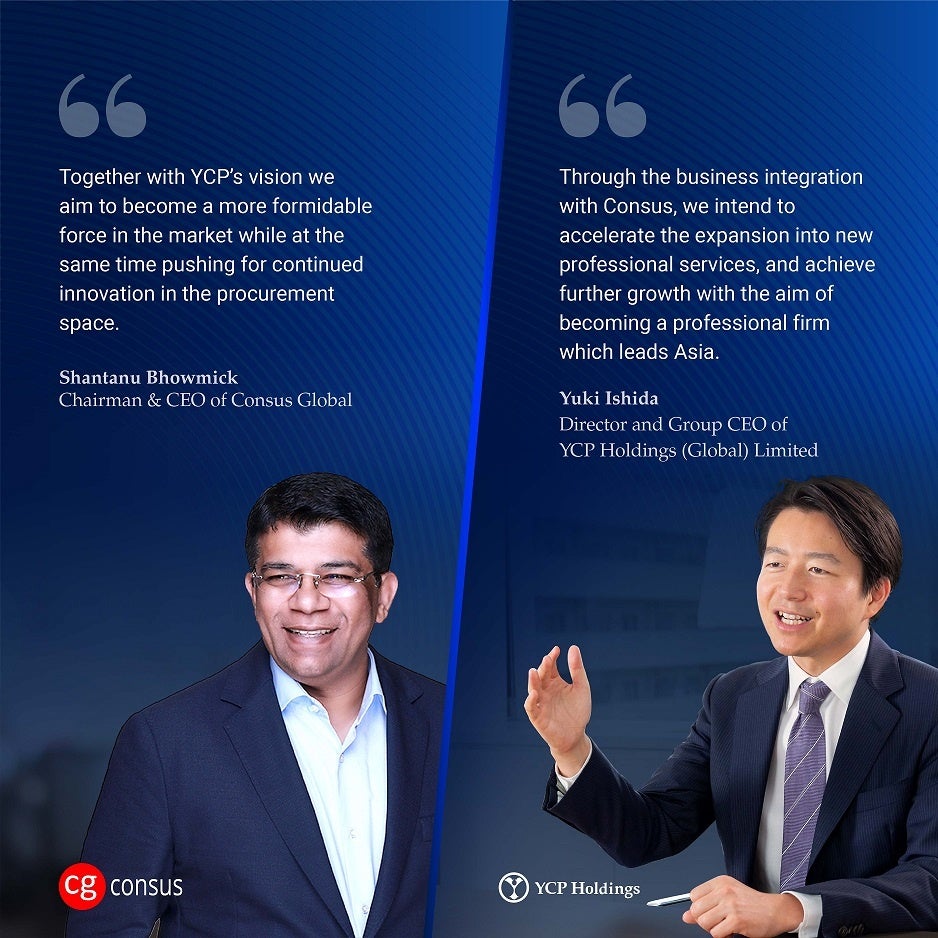 私たちは、本経営統合によってYCPグループに参画し、当社の調達・サプライチェーンに関する深い知見を、より大きなプラットフォームを通じてクライアントの皆様に還元できることを大変喜ばしく思っております。YCPのグループビジョンのもと、調達領域におけるイノベーションを引き続き実現していくとともに、これまで以上に強固かつ優れた組織の構築を目指してまいります。2010年の創業以来、コンサスは調達領域におけるアドバイザリー業務、デジタルトランスフォーメーション(DX)、オペレーション改善、マージン削減に関して、卓越性を絶えず追求し続けてきました。今後数か月にわたり、コンサスのリーダーシップチームは、YCPのリーダーシップチームと手を携えながら、コンサルティング領域におけるシナジー創出および既存能力の強化に取り組んでまいります。また、これまで調達及びサプライチェーン構築の分野で当社に貴重な機会を提供いただいた全てのクライアントの皆様に改めて感謝を申し上げるとともに、YCPファミリーの一員として、皆様にさらなる付加価値を提供できるよう努力してまいります。最後になりますが、コンサスを調達及びサプライチェーンソリューションにおけるリーディングカンパニーの一つにまで押し上げた、当社の素晴らしい仲間に感謝を伝えます。私たちは、今後もYCPのリーダーシップのもと、社員の成長を支援し、より大きく、優れた機会を提供できるよう尽力してまいります。