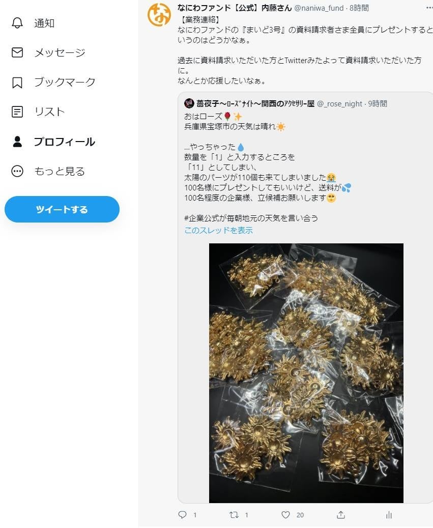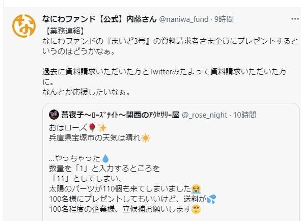誤発注してしまい困っているというツイートを拝見し、「何かできないだろうか」との思いから企画しました。