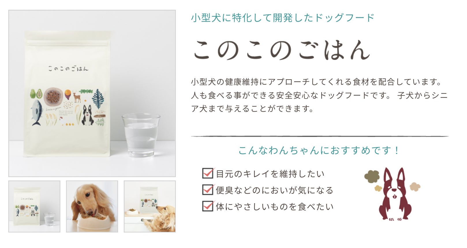 コノコトトモニとは、わんちゃんの健康にこだわり、人も食べることができる安全安心な品質の原材料を使用したドッグフードを取り扱うブランドです。