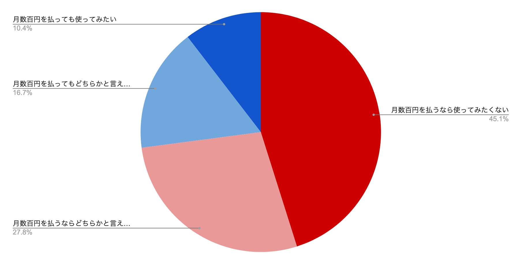 ・月数百円を払うなら使ってみたくない:約45.1%(65人が回答)