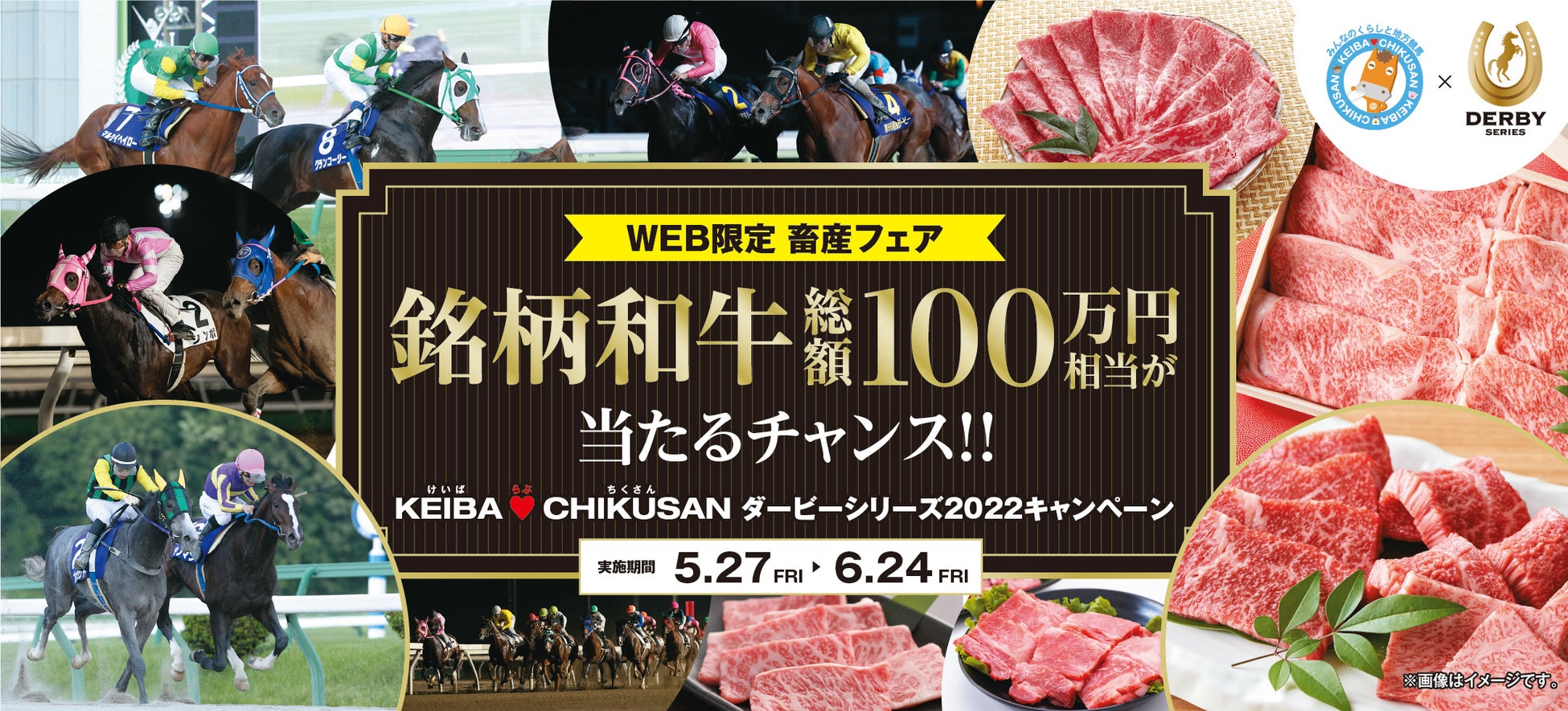 【KEIBA LOVE CHIKUSAN ダービーシリーズ2022キャンペーン】総額100万円相当の銘柄和牛が当たるチャンス!