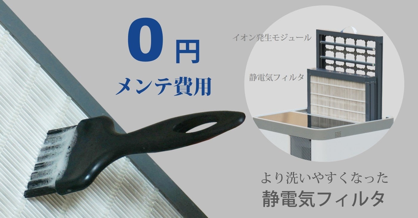 HEPAフィルタを上回る除菌率99.99%の静電気フィルタ式空気清浄機(43畳対応)