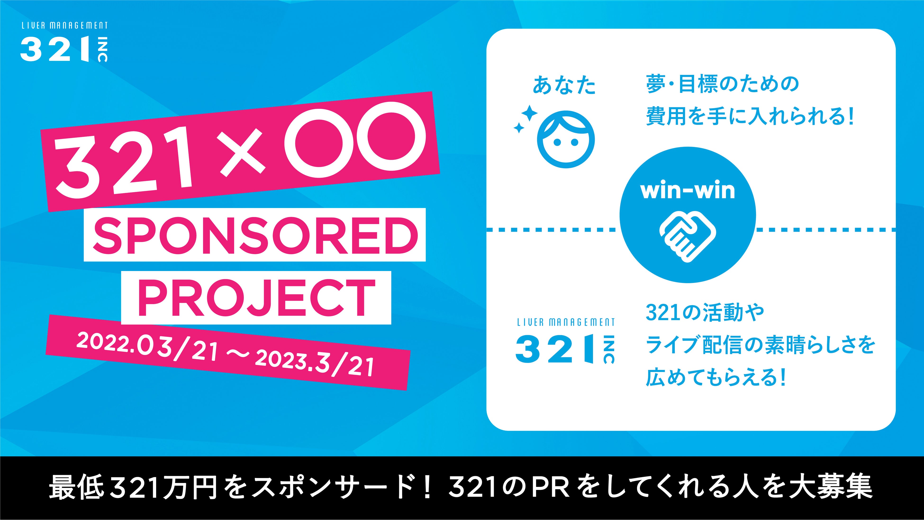 インフルエンサーのゆうこすが最高顧問を務めるライバーマネジメント事務所、株式会社 321 は、自社の PR をしてくれた方にスポンサー費をお支払いする「321×○○プロジェクト」を開始します。