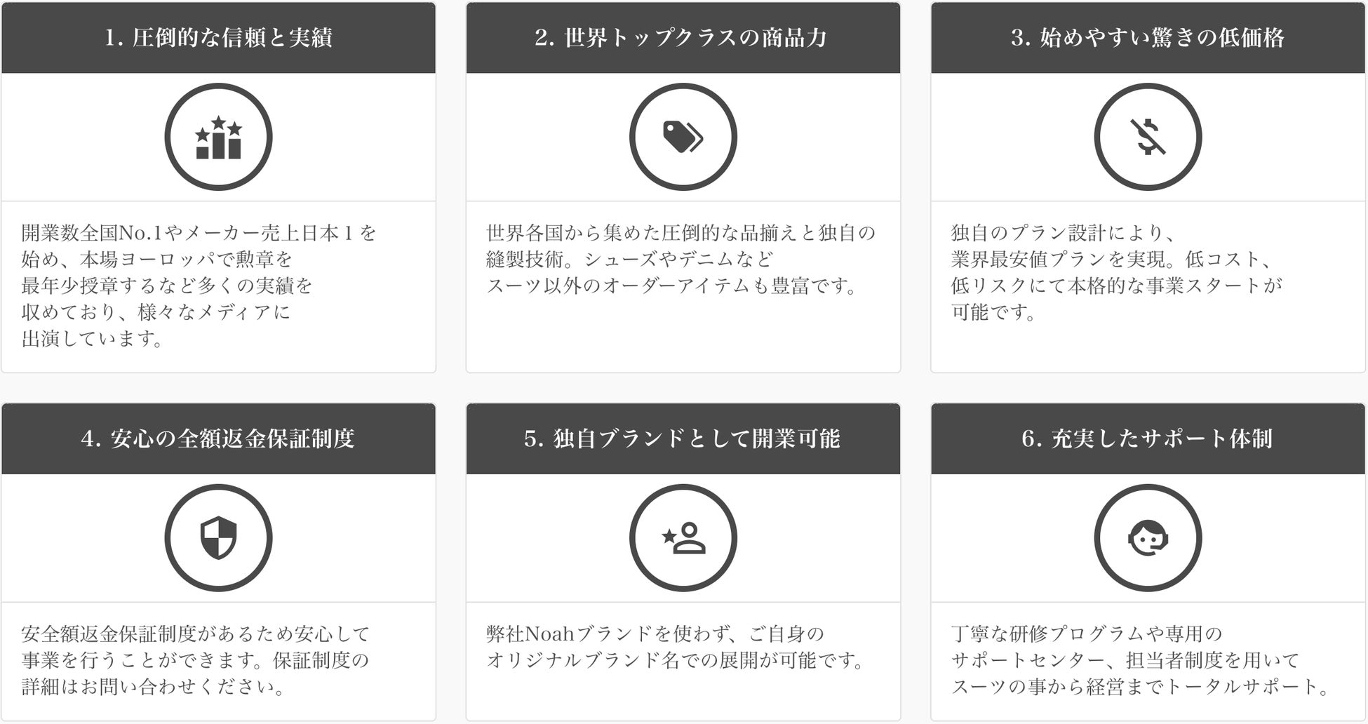 またオーダーメイド事業では①在庫リスク無し ②無店舗でも経営可能 ③予約時のみ販売対応といったモデルにより、起業における『お金、固定費、時間的拘束』といったあらゆるリスクを回避した事業モデルとなっています。
