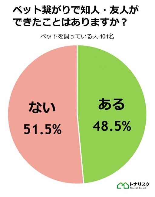 ペットを飼っている人の約半数の48.5%がペット繋がりで知人・友人ができたことがあると回答しました。