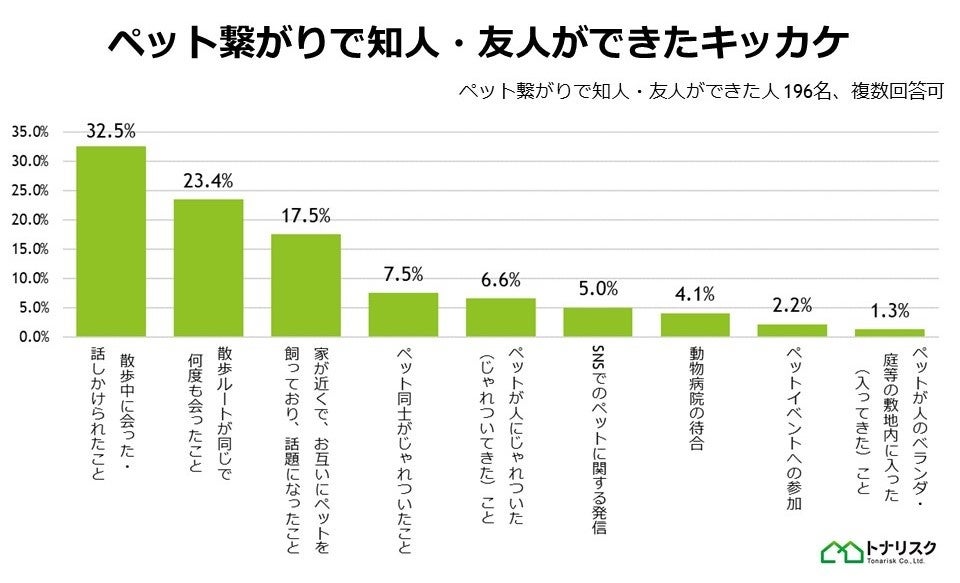 トナリスクがこれまでに行った調査を通して、ペットが近隣のコミュニケーションのキッカケになることがあるとわかりました。そこで今回は、ペットを飼っている全国の19~87歳の男女404名を対象に、ペット繋がりで知人・友人ができたことがあるか、またそのキッカケについて調査しました。