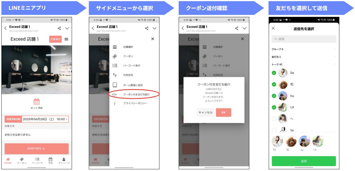 友だち紹介クーポンを送ることができるのは、SalonAnswerに顧客登録済みで、友だち紹介機能を設定しているLINEミニアプリと連携済みのお客様に限られます 。