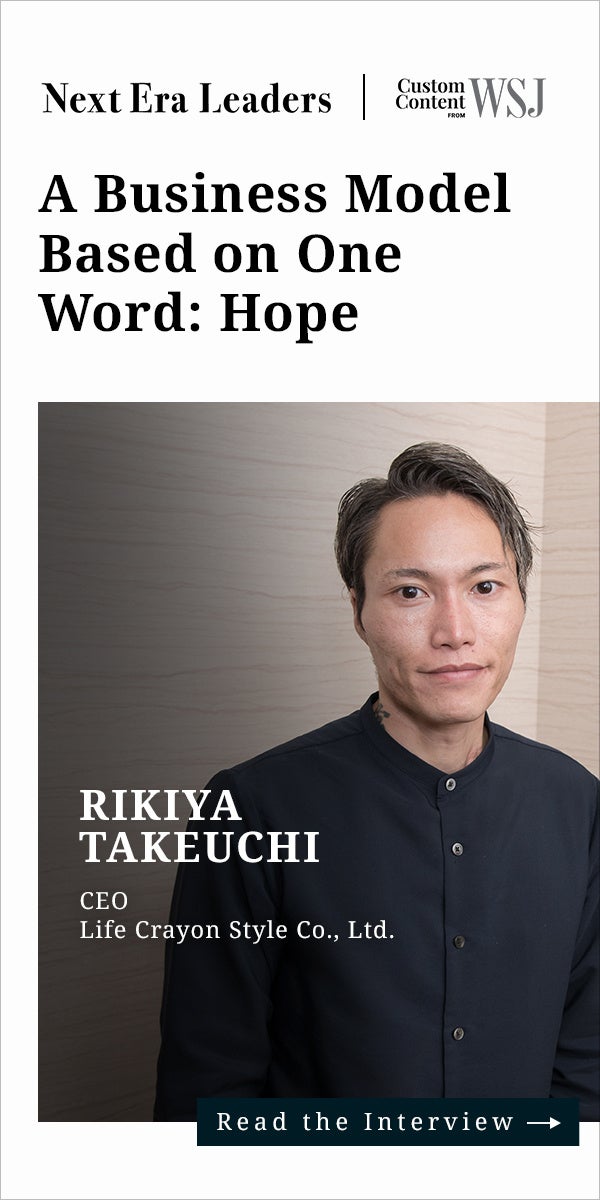 「希望格差」の是正を目指す竹内力也が、革新的なビジネスモデルと社会貢献活動で評価され、『ウォール・ストリート・ジャーナル』の特集「NEXT ERA LEADERS × WSJ」に掲載されました。