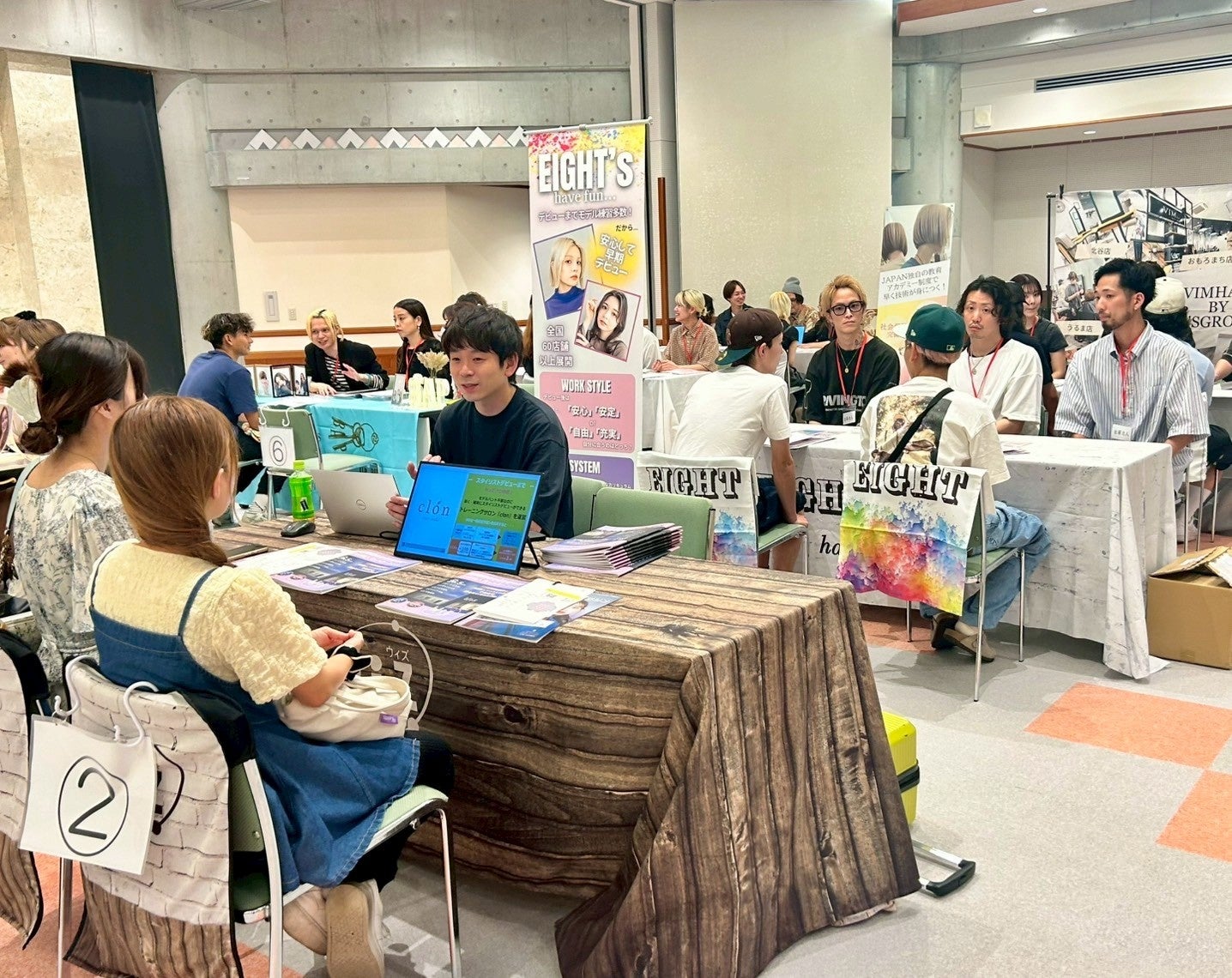 就職フェアに参加した美容専門学校へ通う10~20代の学生、20代の美容師・理容師
