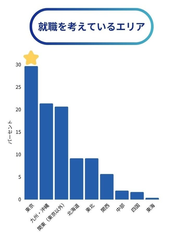 こちらは開催エリアが限定されているため、上期開催されていない東海や四国エリアについては選択が少なかったのですが、どこのエリアでも東京での就職を希望されている参加者が多くいました。