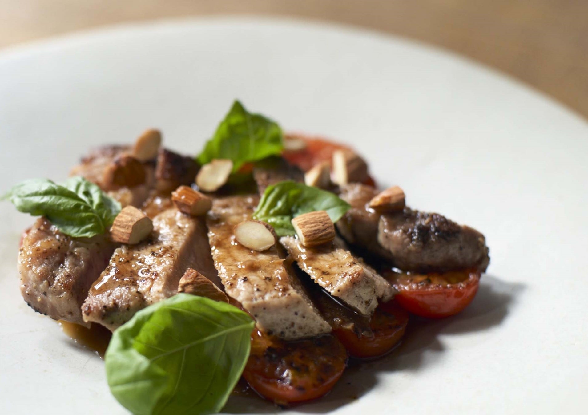 豚ロースの厚切りソテー トマトのグリル添え バジル風味