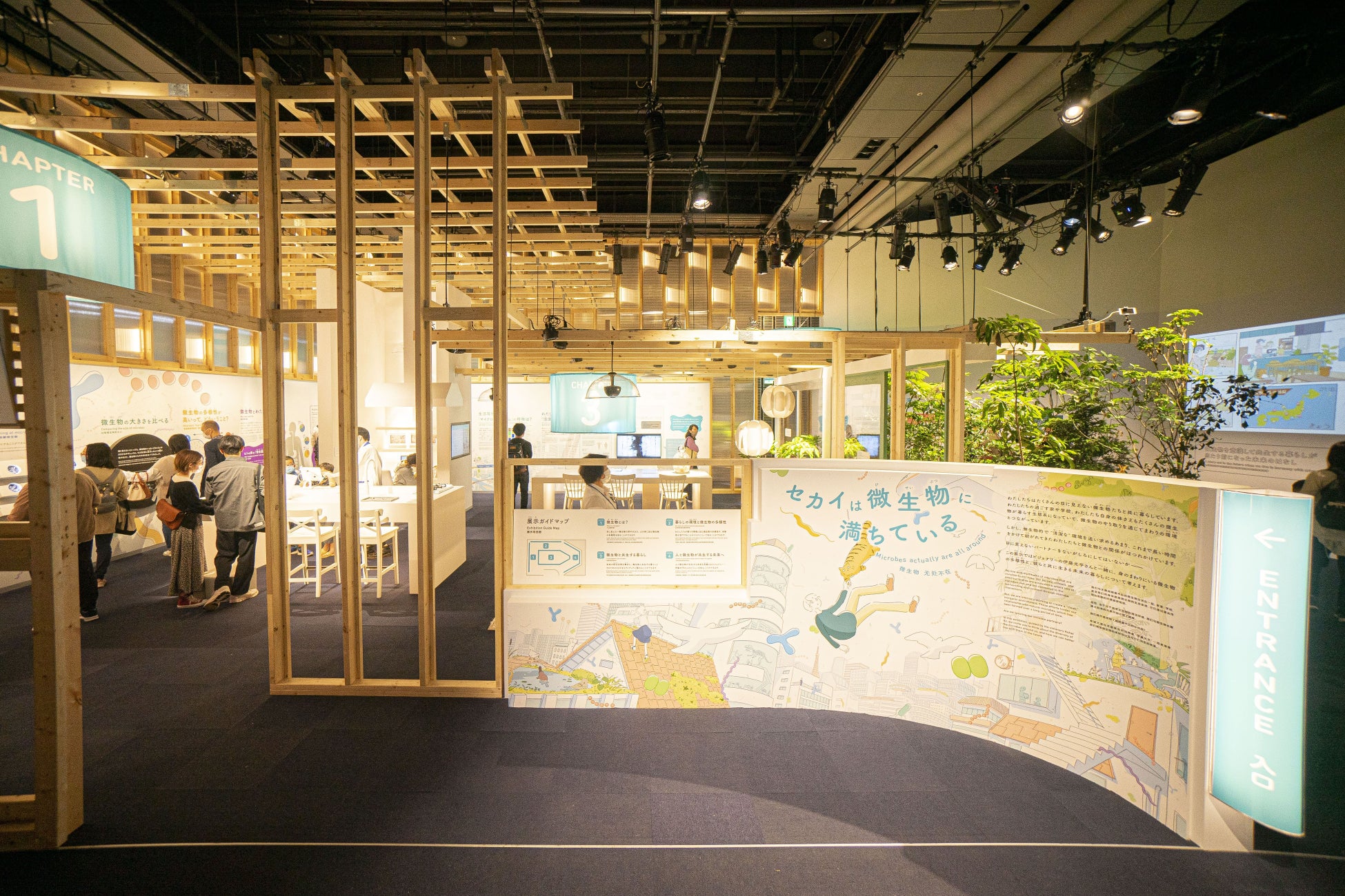 2022年4月から2023年8月にかけて行われた日本科学未来館の常設展示『セカイは微生物に満ちている』をBIOTA代表取締役の伊藤が総合監修しています。本展示では身のまわりの微生物と私たちの関係性に焦点を当て、微生物の多様性の低下やそのリスクについて議論しています。展示空間の中央に実寸大の居住空間と庭園を設け、住空間での微生物を可視化するほか、アーティストや小説の展示などさまざまなジャンルのコラボレーターの協力のもと、微生物との共生社会の可能性を提示しました。