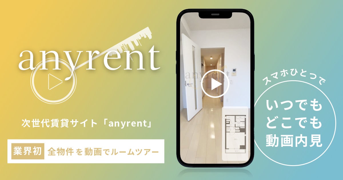 静止画の1800倍!業界初、全物件をルームツアー動画で確認できる「anyrent(エニレント)」が物件探しを効率化!5月25日正式版をリリース!