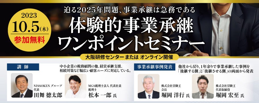 10月5日(木)無料セミナー開催『体験的事業承継ワンポイントセミナー』