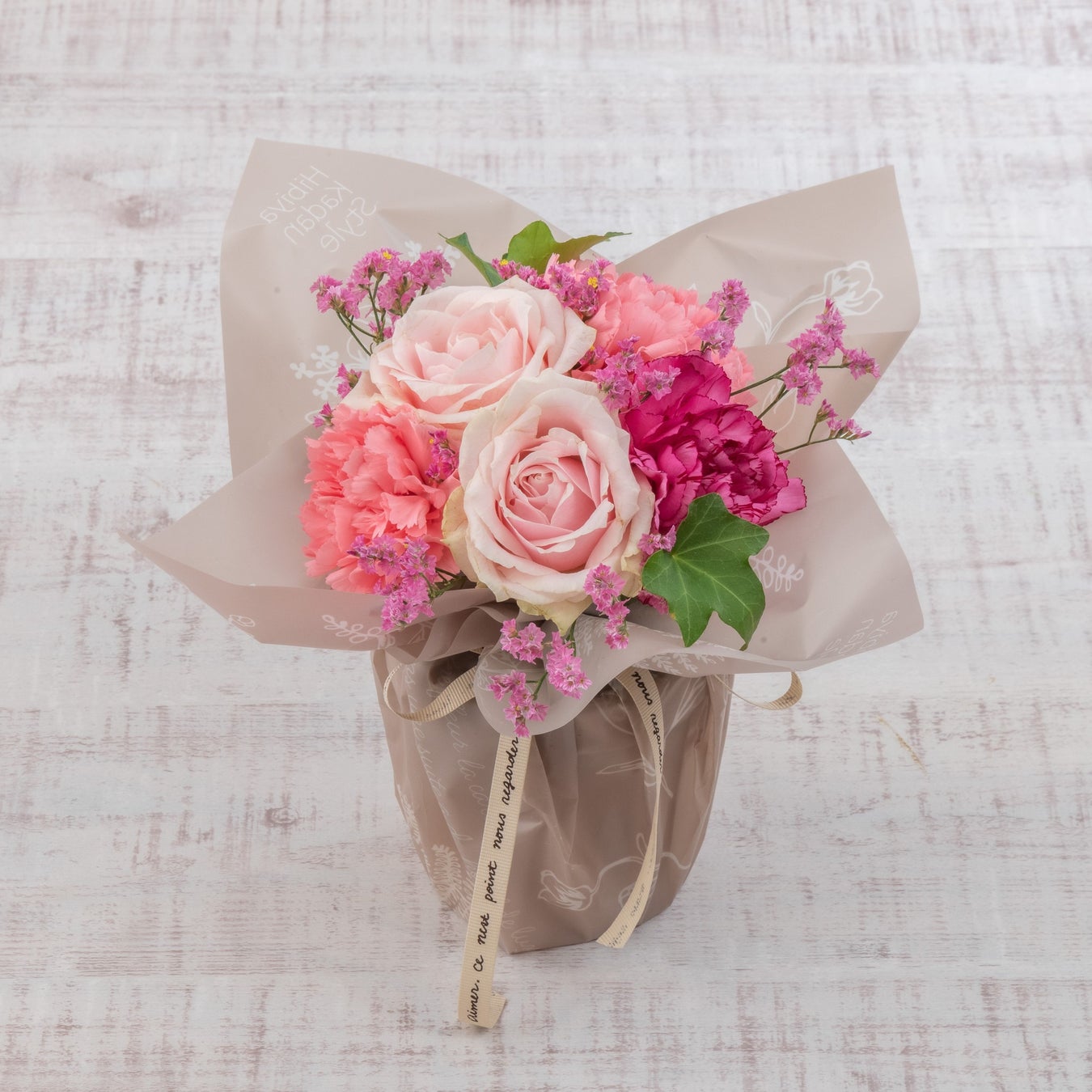 【そのまま飾れるブーケ】花材:生花(バラ、カーネーション、スターチス、グリーン)