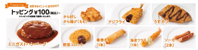 【商品概要】4つの「ゴーゴーガストカレー」とお好きなメニューに好きなだけ追加できるトッピングは、以下の通りです。ゴーゴーカレー商品は、ライスの大盛(約1.5倍)、特盛(約2倍)をすべて同じ値段で提供します。カレーの辛さはいずれも中辛。