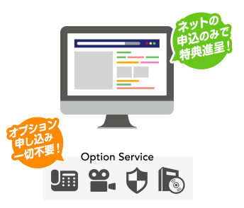 当社お申し込みの最大のメリットは「早期キャッシュバック進呈とオプション加入不要」です。強引な勧誘やお試しでオプションサービスへの加入を勧めることは一切ございません。