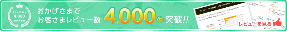 本日 6月14日(火)にそちらのレビュー数が4000件を達成致しました。当社からソフトバンク光をお申し込みいただけたお客様のリアルなご意見をチェックする事が出来、またお得な申し込み特典が貰えるソフトバンク光キャンペーンサイトをお探しの方や、ソフトバンク光代理店の評判が気になっている方に参考になるレビューを確認する事が出来ます。