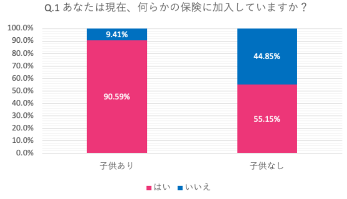 子供がいる人の加入率は90.59%に対し、子供がいない人の加入率は55.15%。
