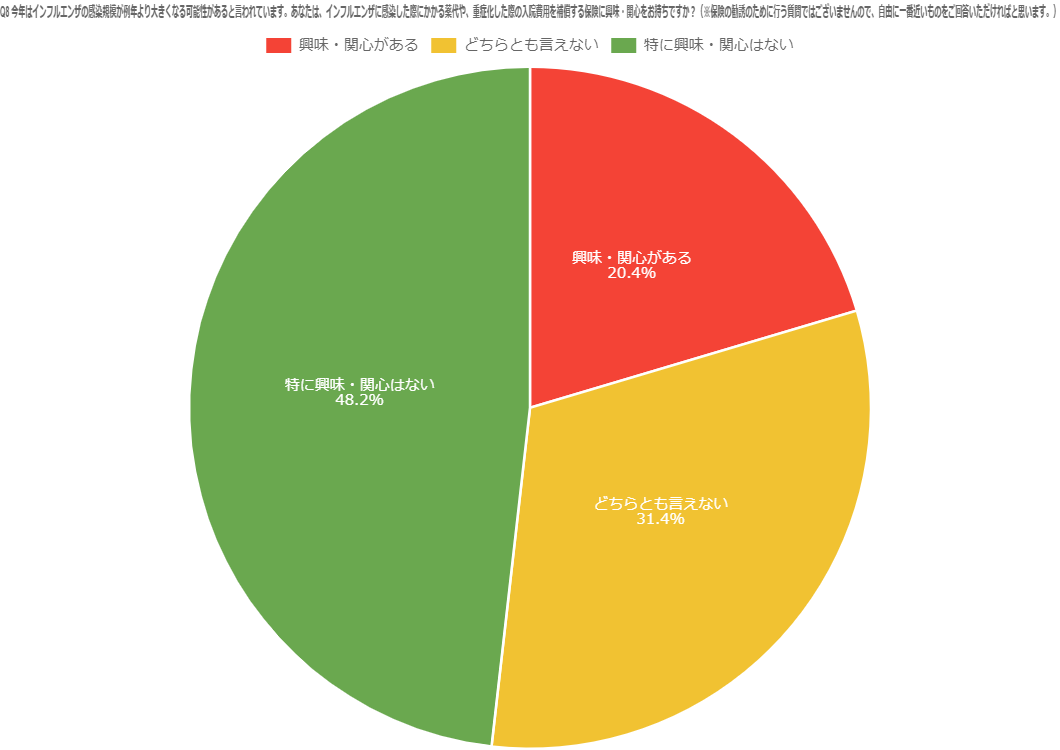 Q.8 今年はインフルエンザの感染規模が例年より大きくなる可能性があると言われています。あなたは、インフルエンザに感染した際にかかる薬代や、重症化した際の入院費用を補償する保険に興味・関心をお持ちですか?(n=500)