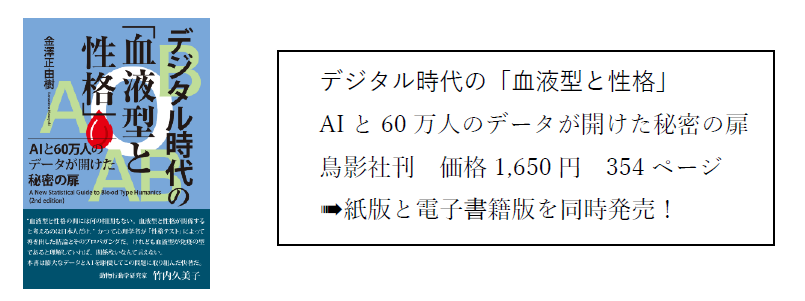 本研究の先行事例は、2021年に出版された金澤の著書『デジタル時代の「血液型と性格」』に収録されています。