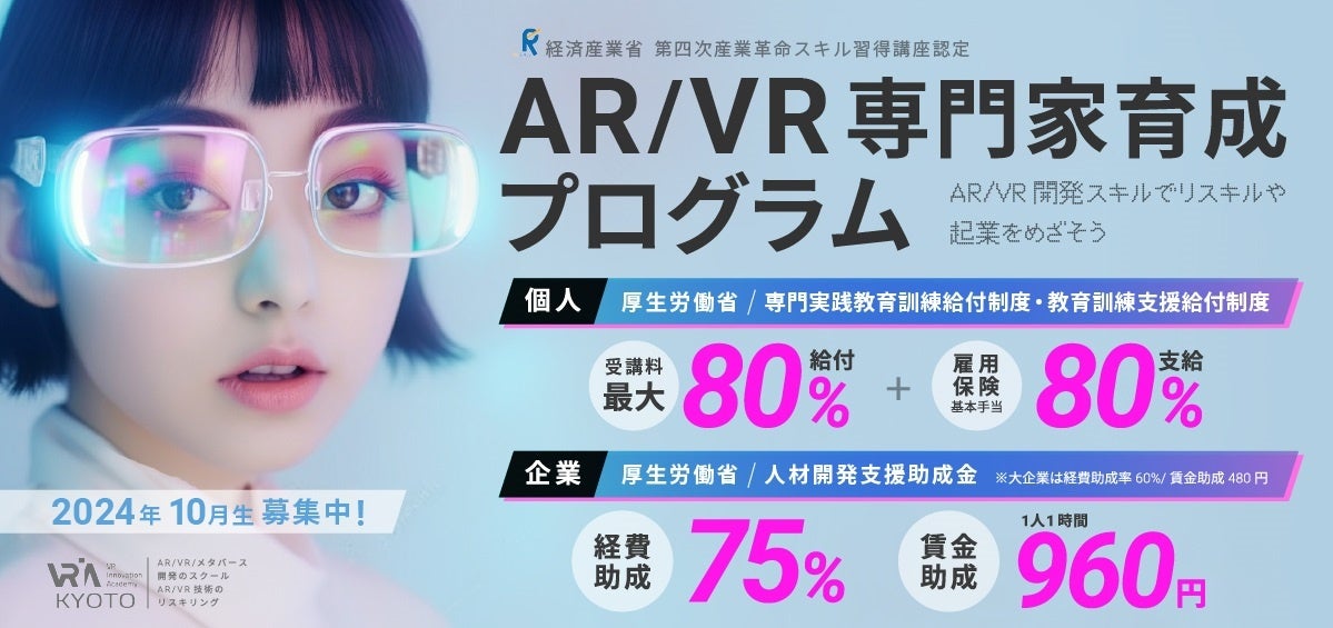 雇用保険制度の一部改正で10月より教育訓練給付率が80%にUP!「AR/VR専門家育成プログラム」がよりお得に受講可能に
