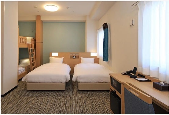 メインの客室タイプである16㎡のツインルームはシンプルでありながら快適な滞在を演出するアメニティ、レイアウトとなっており、観光で訪れるレジャー層にとって使いやすいお部屋となっております。
