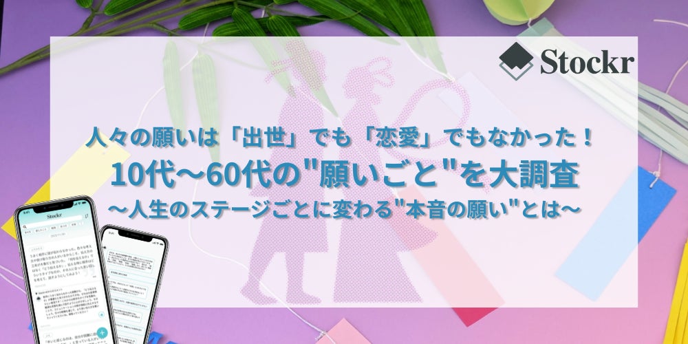 株式会社ビルディット(本社:東京都八王子市、代表取締役CEO:富田陽介)が提供する振り返りアプリ「Stockr(ストッカー)」は、七夕の時期に合わせ、アプリ内でユーザーがAIとの対話から設定したビジョン(=願いごと)の内容を分析しました。
