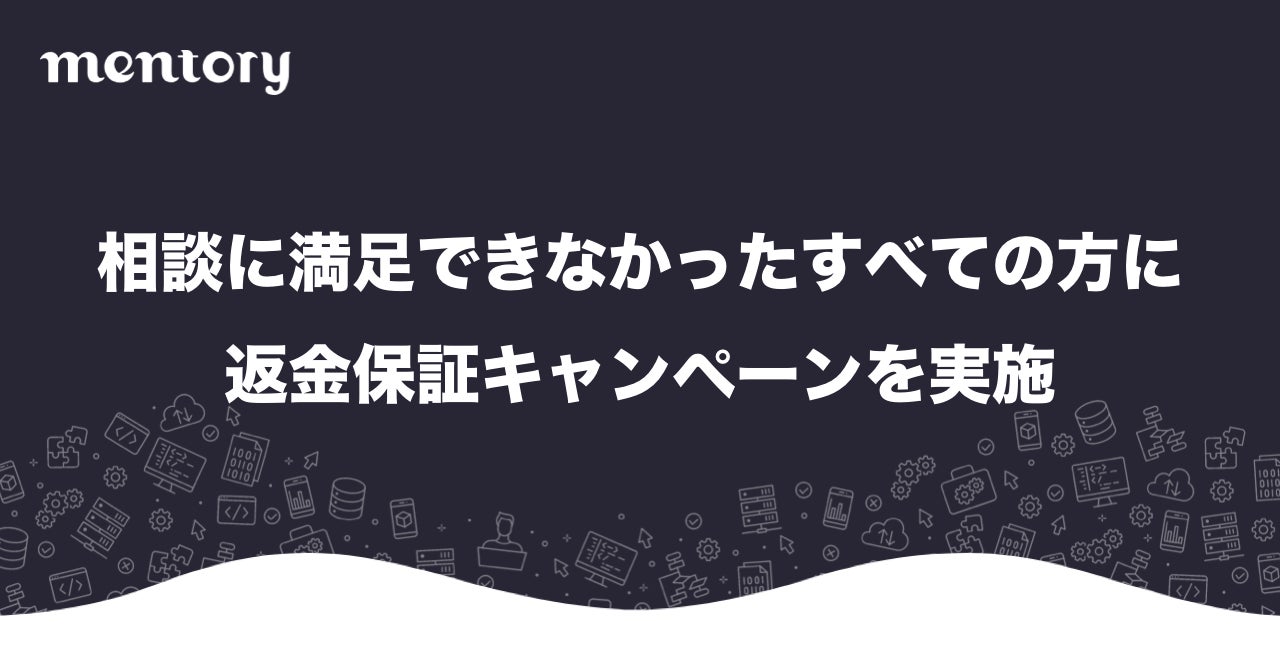 メンタリー株式会社(本社:京都府京都市、代表取締役社長:今谷 祐通)はエンジニア相談サービス「mentory」において「返金保証キャンペーン」を開始いたしました。