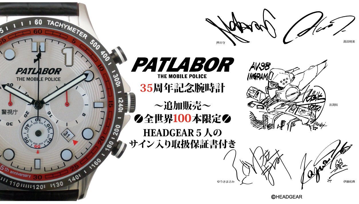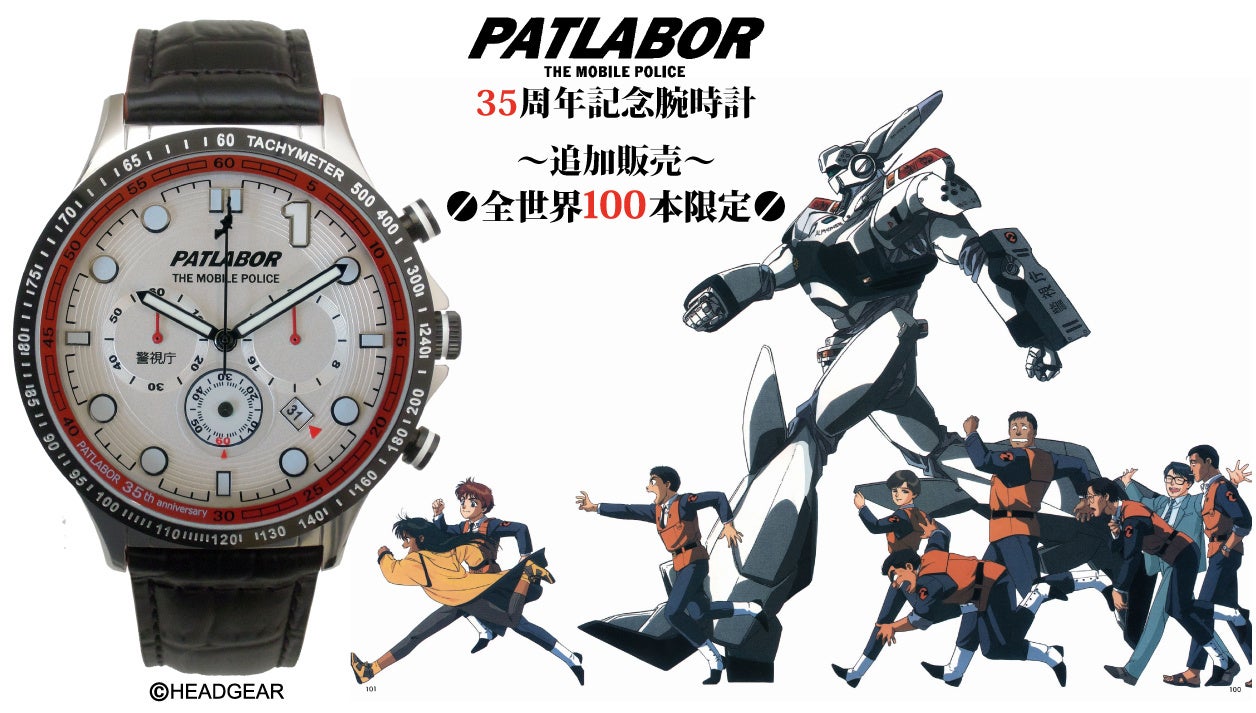 再販決定!発売開始わずか60分で完売した 機動警察パトレイバー 35周年記念腕時計。多数のお問合せと熱い要望を頂きまして、100本の再販が決定いたしました。