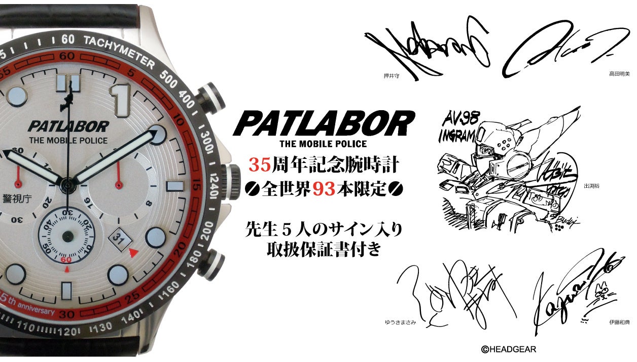 「機動警察パトレイバー」の35周年を記念した腕時計の再販予約を11月22日より開始。
