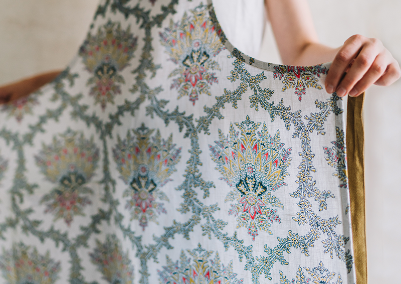 上品さを持ちながら、ディテールにいたるまでアイデアと遊び心を散りばめて。染色、刺繍、縫製の工程は、国内選りすぐりの工場の協力を得て、丁寧に作られています。