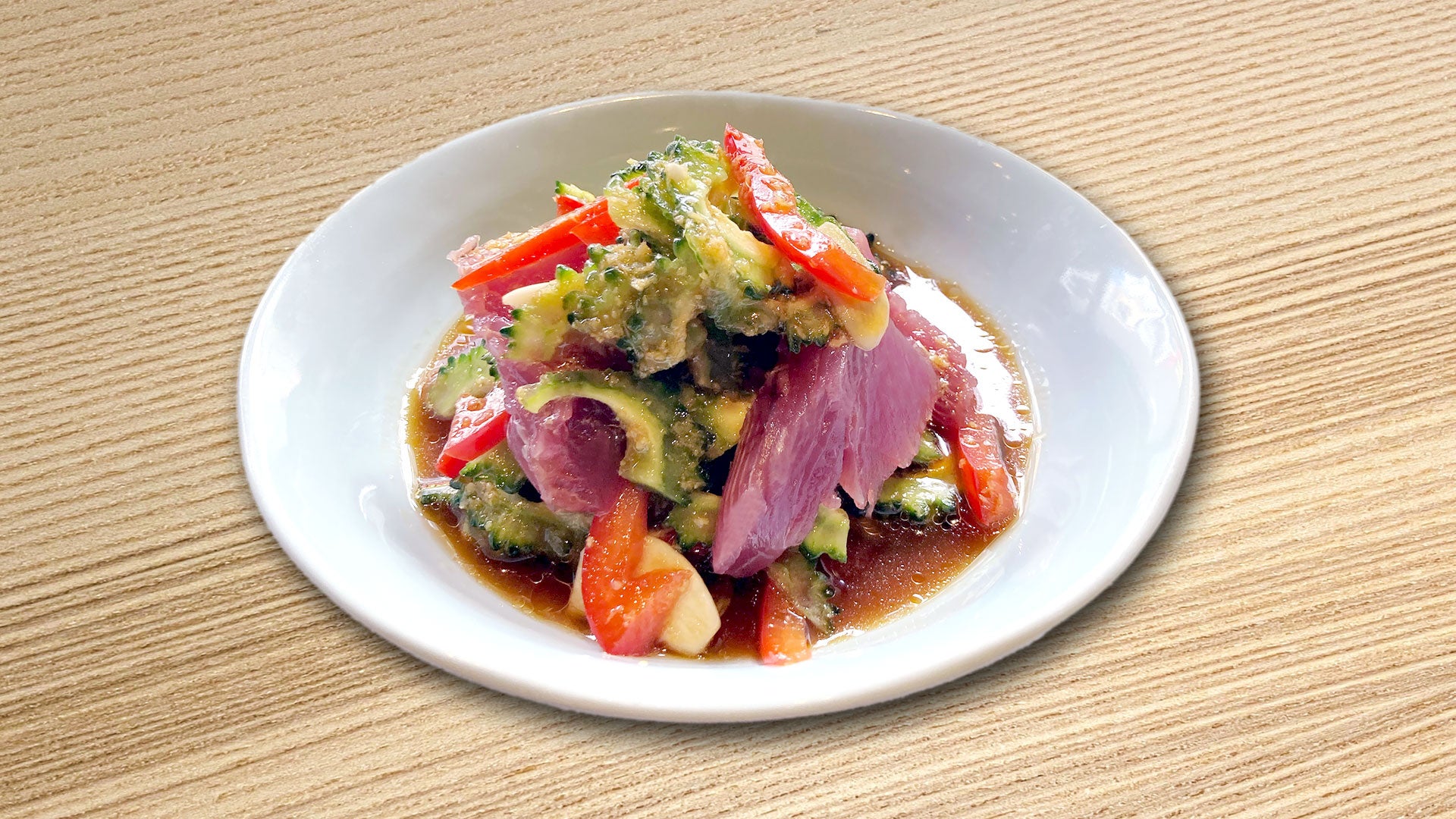 ■かつおとゴーヤのにんにくたっぷりサラダ 1,000円(税込1,100円)
